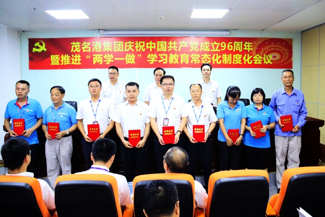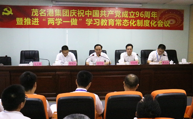 6月28日,茂名港集團(tuán)召開慶祝中國共產(chǎn)黨成立96周年暨推進(jìn)“兩學(xué)一做”學(xué)習(xí)教育常態(tài)化制度化會(huì)議。集團(tuán)黨委書記、董事長劉乃英圍繞推進(jìn)“兩學(xué)一做”學(xué)習(xí)常態(tài)化制度化工作為廣大黨員上了一堂生動(dòng)而深刻的黨課,黨委副書記、紀(jì)委書記肖炳璋主持會(huì)議,副總裁楊超燦宣讀了《關(guān)于表彰2016年度優(yōu)秀黨員的決定》,黨委委員黃遠(yuǎn)維對《關(guān)于2017年推進(jìn)“兩學(xué)一做”學(xué)習(xí)常態(tài)化制度化的實(shí)施方案》作了說明。