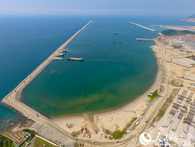 正在建設中的西防波堤工程。劉遠忠攝 其中,作為博賀新港區(qū)的重要基石和亮點工程,防波堤工程分為東、西兩段,互為掩護,共同為博賀新港區(qū)形成一個有掩護的環(huán)抱式的風平浪靜的現(xiàn)代化深水良港,為港區(qū)內后續(xù)臨港產業(yè)項目建設、發(fā)展提供優(yōu)良條件。