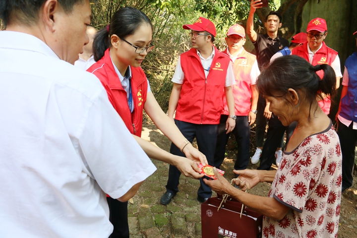 慰問組一行在村委會向前來的貧困戶致以節(jié)日和問候和祝福,并送上節(jié)日禮品。隨后,慰問組進村入戶,走訪慰問了行動不便的扶貧戶,與扶貧戶零距離接觸,面對面,心貼心地進行了親切交流,并對他們的生活狀況及健康狀況等情況進行深入了解,鼓勵他們樹立脫貧信心,配合落實好上級扶貧措施,爭取早日脫貧致富,并祝愿他們過上一個溫暖祥和的中秋節(jié)。集團志愿者們還拿出清潔工具,到扶貧戶家中幫助他們搞清潔衛(wèi)生,讓他們深切地感受到了社會大家庭的溫暖。