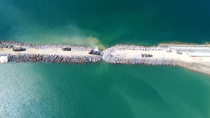 趙廣輝一行乘船深入博賀新港區(qū),實(shí)地調(diào)研10萬噸級成品油碼頭、30萬噸級原油碼頭、粵西LNG造陸項目建設(shè)進(jìn)展,認(rèn)真聽取了有關(guān)工作情況匯報,研究部署下一步工作計劃,并重點(diǎn)對粵西LNG造陸項目的合攏情況進(jìn)行了考察。