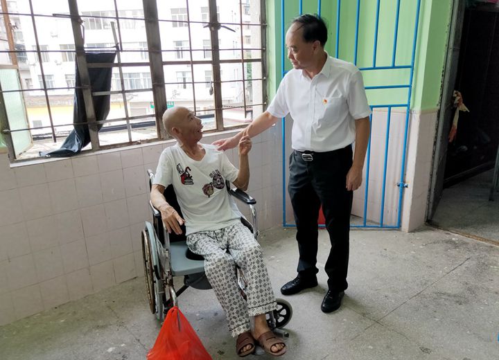 劉乃英還到茂名市頤養(yǎng)院走訪慰問博賀村五保戶鄧某,為他送上了慰問品,帶去親切的問候。慰問中,劉乃英詳細(xì)了解鄧某的身體情況及困難,鼓勵他樂觀面對生活,好好照顧身體,堅定在黨和政府的關(guān)懷下脫貧脫困的信心。