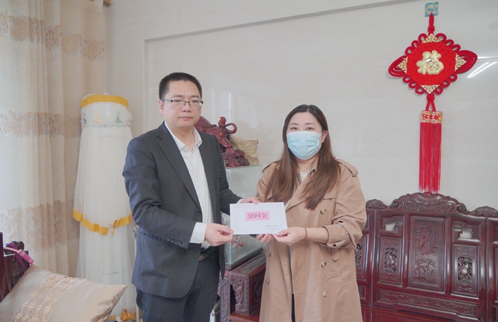 集團(tuán)黨委委員、副總裁楊超燦帶隊(duì)到患病職工鄧嬋的家中進(jìn)行慰問(wèn)。期間與鄧嬋進(jìn)行了親切的交談,詢(xún)問(wèn)了她術(shù)后的身體情況、恢復(fù)進(jìn)展,鼓勵(lì)她要樹(shù)立信心、保持樂(lè)觀向上的陽(yáng)光心態(tài),囑咐她安心養(yǎng)病,并祝愿她早日康復(fù)!