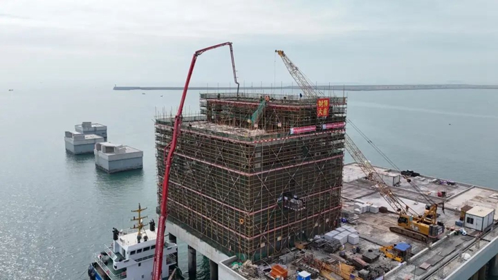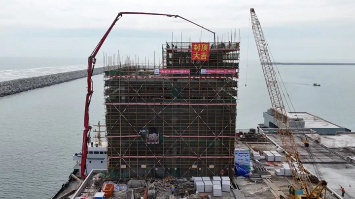 12月25日,隨著最后一方混凝土在工作樓頂層澆筑成型,茂名港博賀新港區(qū)30萬噸級原油碼頭工程工作樓順利封頂。從項(xiàng)目藍(lán)圖到喜封金頂,不僅標(biāo)志著項(xiàng)目取得了重要的階段性勝利,也是30萬噸級原油碼頭項(xiàng)目臨時(shí)黨支部在2024年取得的又一勝利戰(zhàn)果。