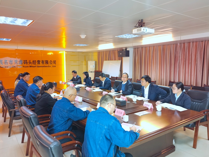 12月23日,茂名港集團(tuán)黨委委員、副總裁周成率隊(duì)到集團(tuán)參股企業(yè)茂名市天源碼頭經(jīng)營(yíng)有限公司就2025年度工作思路及計(jì)劃進(jìn)行調(diào)研交流。茂名市天源碼頭經(jīng)營(yíng)有限公司總經(jīng)理陳升陪同調(diào)研,集團(tuán)財(cái)務(wù)部、濱海控股公司、港口經(jīng)營(yíng)公司、股權(quán)代表等相關(guān)人員參加調(diào)研會(huì)。