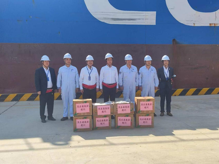 中遠海運能源公司副總經(jīng)理秦炯、中遠海運能源公司油輪事業(yè)部副總經(jīng)理陳俊偉等一行在茂名港集團副總裁李昱祺的陪同下,來到?吭诿奂瘓F東區(qū)化工碼頭E12泊位的“遵義潭”油輪上慰問船員,中遠海運能源公司廣州中心副總經(jīng)理施偉民與茂名港集團商務(wù)部負(fù)責(zé)人等陪同慰問。