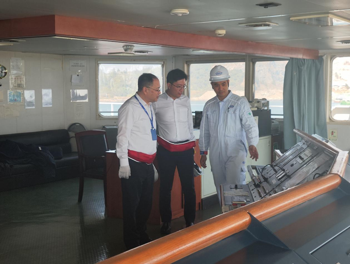 期間,秦炯參觀了甲板和機艙,詳細了解了船舶的維護保養(yǎng)情況,聽取了船員們的日常工作開展情況,深入了解船舶的運營狀況與船員生活狀況,了解他們所思所想所盼。同時,秦炯代表中遠海運能源公司向全體船員致以元旦問候,并強調(diào)節(jié)日期間要加強安全工作,共慶新年,勉勵船員們高質(zhì)量、高效率地完成各項任務(wù),以實際行動為新的貢獻作出努力。他還強調(diào),茂名港集團與中遠海運能源公司的合作具有廣闊的前景和巨大的潛力,期待雙方進一步發(fā)揮各自優(yōu)勢,實現(xiàn)資源共享、優(yōu)勢互補。