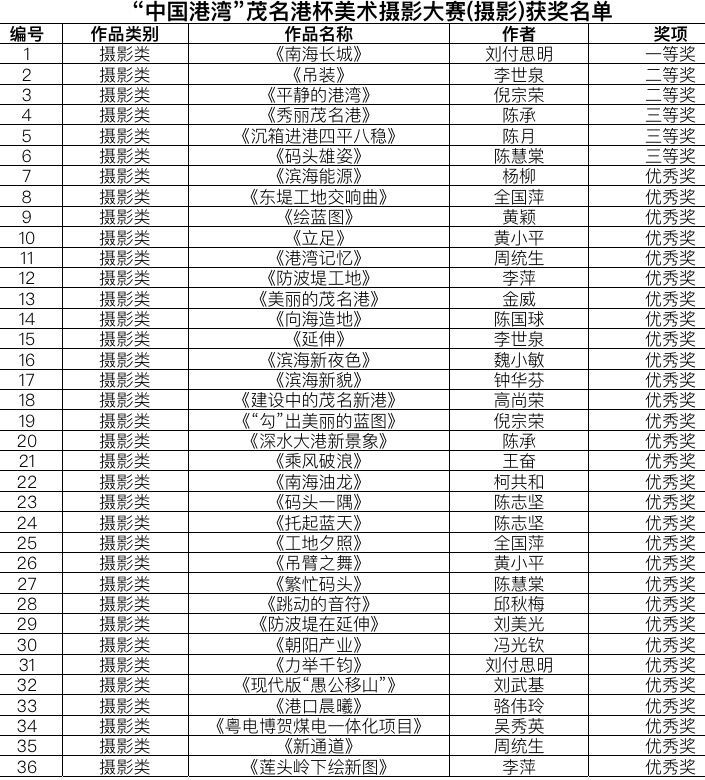 《第一屆“中國港灣”茂名港杯美術(shù)攝影大賽(攝影類)獲獎(jiǎng)名單》 第一屆“中國港灣”茂名港杯美術(shù)攝影大賽(攝影類)獲獎(jiǎng)名單.xls