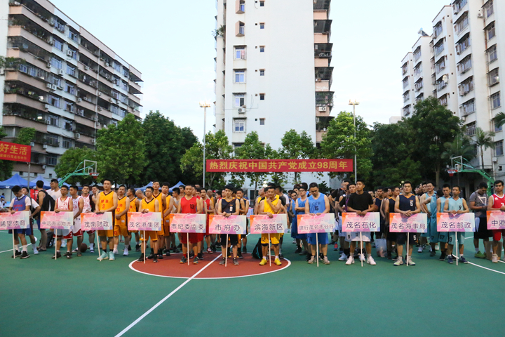 6月28日晚,由茂名港集團(tuán)主辦,建設(shè)銀行茂名市分行、茂名市茂名金源置業(yè)有限公司冠名協(xié)辦的2019“建行-金源置業(yè)杯”茂名港男子籃球邀請(qǐng)賽,在市文明南路銀苑籃球場(chǎng)拉開了序幕,為紀(jì)念建黨98周年增添喜慶氣氛。市紀(jì)委副書記潘湖,市政府副秘書長(zhǎng)李恒和,市紀(jì)委常委徐慶,茂名港集團(tuán)黨委書記、董事長(zhǎng)劉乃英,建設(shè)銀行茂名市分行黨委書記、行長(zhǎng)李賢,以及各參賽單位的有關(guān)領(lǐng)導(dǎo),運(yùn)動(dòng)員、裁判員及各單位觀眾等200多人參加了開幕式。茂名港集團(tuán)黨委副書記、工會(huì)主席肖炳璋主持開幕式。