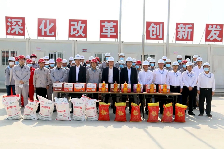 1月26日,新春佳節(jié)來臨之際,根據(jù)集團黨委工作部署,茂名港集團黨委副書記、工會主席肖炳璋,集團副總裁楊超燦率隊對集團重點項目施工單位進(jìn)行慰問,并為150天大會戰(zhàn)中表現(xiàn)突出的施工單位授牌表彰。