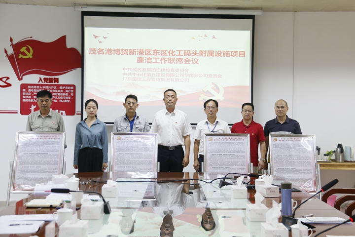 5月20日,根據(jù)集團黨委工作部署,集團紀委與茂名港博賀新港區(qū)東區(qū)化工碼頭附屬設(shè)施工程項目施工單位中石化五建華南分公司和監(jiān)理單位廣東國信工程監(jiān)理集團共同召開廉潔工作聯(lián)席會議,標志著項目廉政工作聯(lián)動會商機制正式建立。集團黨委委員、紀委書記、監(jiān)察專員陳軍主持會議,各參建單位分管紀檢監(jiān)察工作領(lǐng)導、項目負責人、關(guān)鍵崗位人員近20人參加了本次會議。