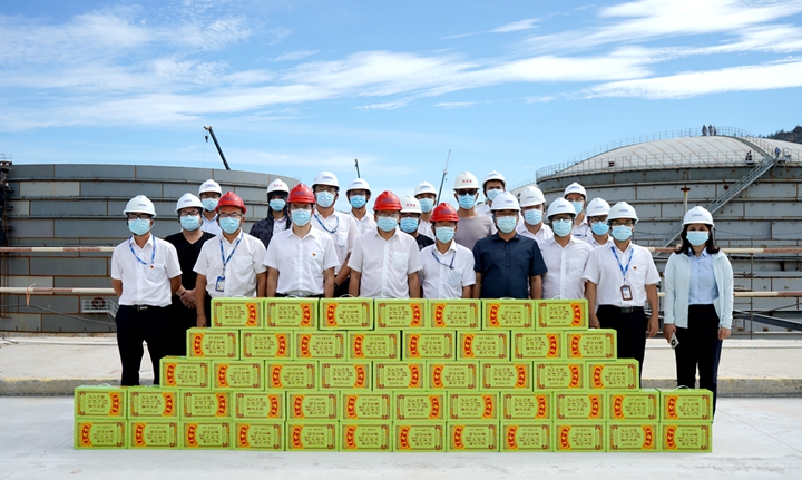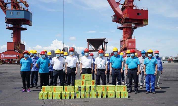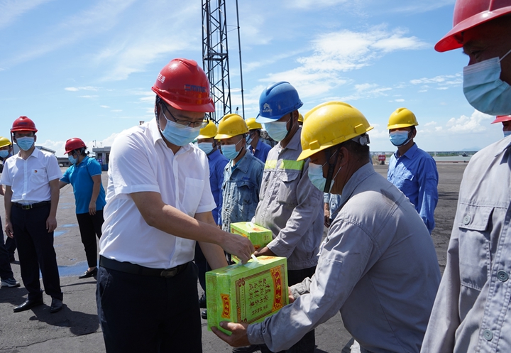 7月14日,集團(tuán)黨委委員、副總裁、工會(huì)主席楊超燦率隊(duì)到集團(tuán)下屬港口經(jīng)營(yíng)公司碼頭作業(yè)現(xiàn)場(chǎng)、中油王港公司庫區(qū)、博賀新港區(qū)重點(diǎn)項(xiàng)目施工現(xiàn)場(chǎng)等處“送清涼”,為奮戰(zhàn)一線的職工發(fā)放防暑降溫飲品、用品。