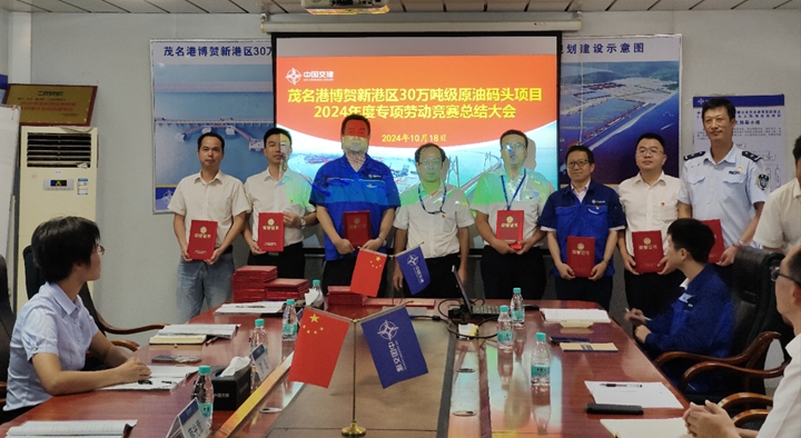 10月18日,茂名港博賀新港區(qū)30萬噸級原油碼頭工程項(xiàng)目臨時黨支部在項(xiàng)目部會議室召開2024年“奮戰(zhàn)120天”專項(xiàng)勞動競賽總結(jié)表彰大會,對自開展勞動競賽和成立黨員先鋒突擊隊(duì)以來為項(xiàng)目建設(shè)默默奉獻(xiàn)、表現(xiàn)優(yōu)異的優(yōu)秀黨員干部和先進(jìn)個人進(jìn)行表彰。集團(tuán)黨委委員、總工程師蔡光章出席會議并講話,集團(tuán)黨群工作部相關(guān)人員陪同出席會議。